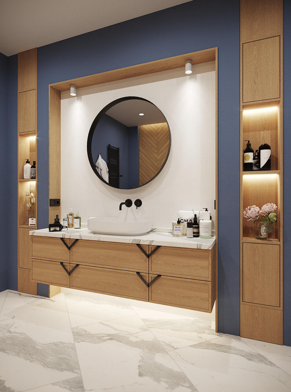 I create photorealistic kitchen or bathroom visuals